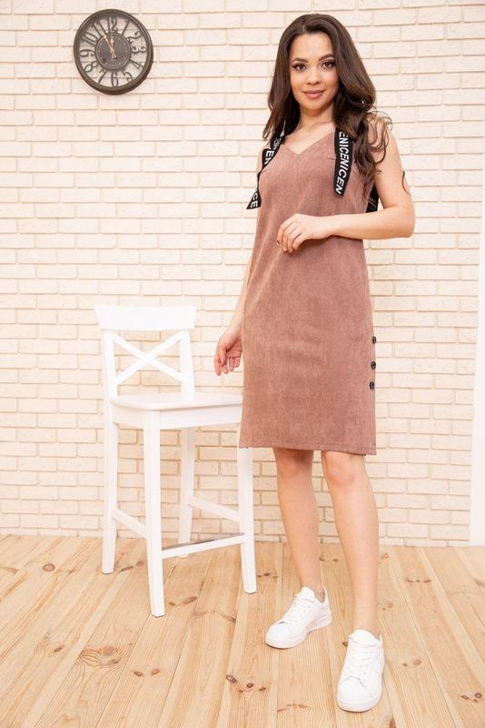 Платье-сарафан из эко замши, цвет бежевый, 104r005-1