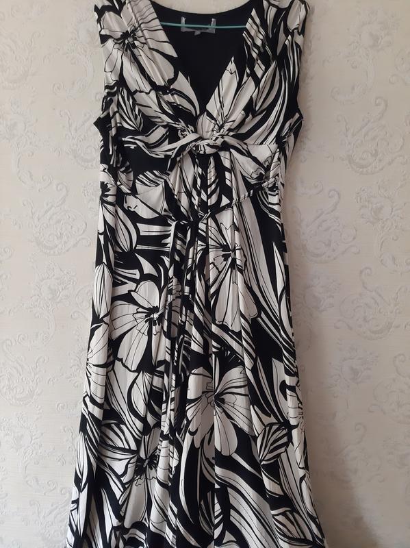 Платье 100% Вискоза Размер 18 .Бирка Срезана Замеры Длина 136 см Полуобхват груди 54 см. Полуобхват Бедра 67 см .Тканина тянеться добре
