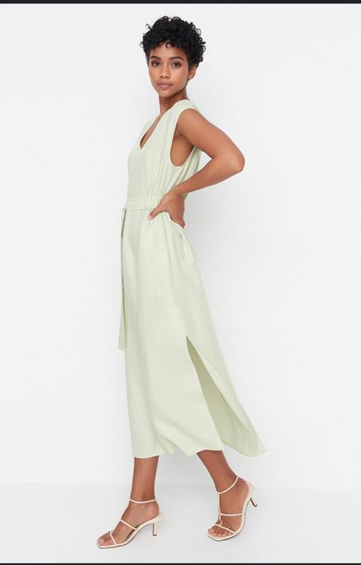 Летнее платье миди приятного нежно-мятного цвета. Размер xs, на рост до 1,65. Ткань - смесь льна и хлопка. Стан идеален. Производство Турция.