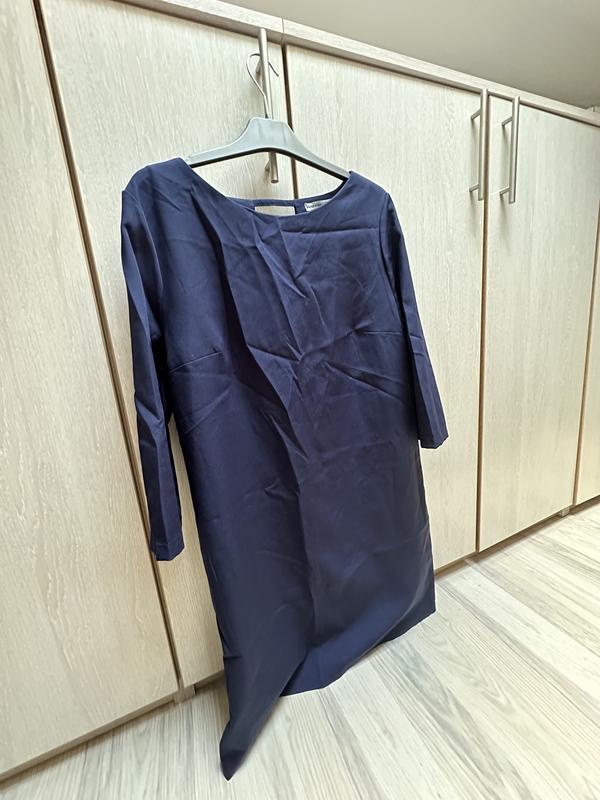 Платье сдержанное, длина немножко за колено (при росте 162 см). Материал костюмный тоненький Удалась на собеседования 3 раза. Размер С-М.