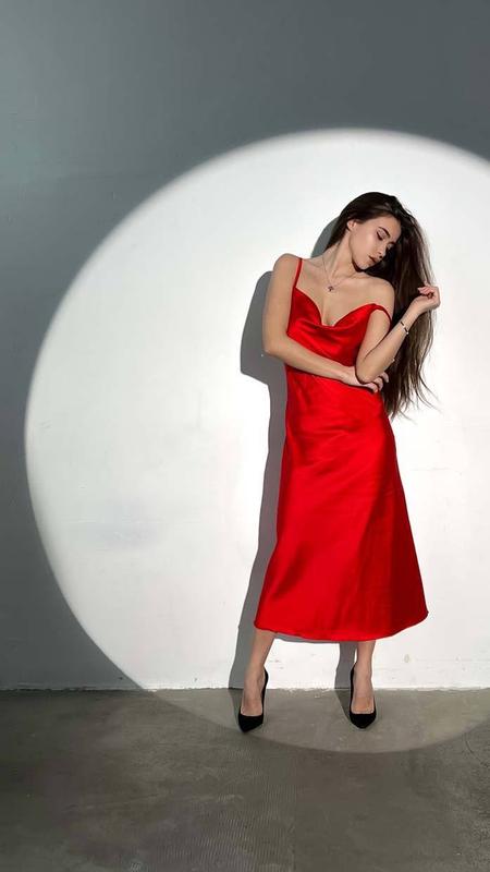Приталенное шелковое платье комбинация в длине миди, платье комбинация с глубоким декольте...