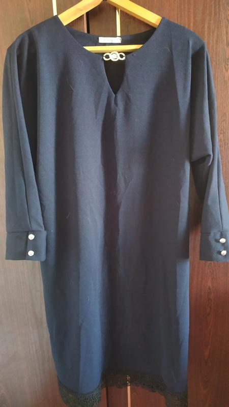 платье темно синего цвета, по низу украшено сетевым, размер 50 52, новое, без бирки