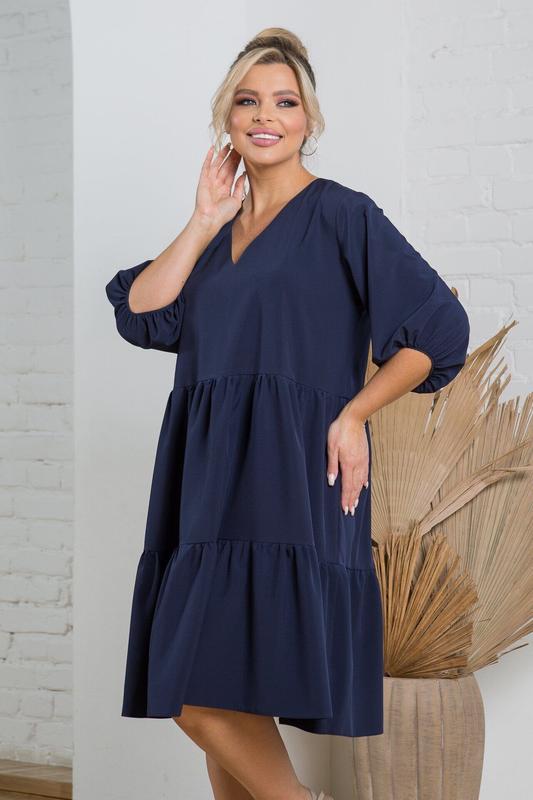 Очень сруное и приятное к телу платье из натуральной ткани. Свободный фасон бохо. Цвет темно синий. Широкий рукав. ПОГ-65 ПОБ-77 Рукав-3/4 Плечі-46 Длина-87