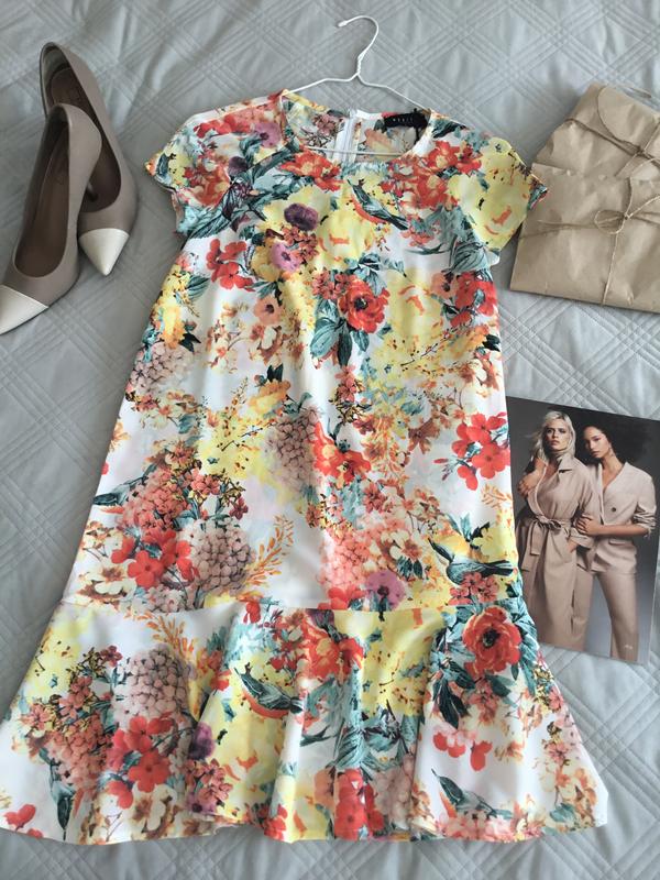 Легкое летнее платье С оборкой Свободного кроя Отлично по фигуре Размер указан 36 Но можно и на большие параметры Замеры🍓 Длина 90 см Бюст 47 см В районе талии 47 см По линии бедра 51 см Высота оборки 22 см Рукав от горловины 21 см Плечевого шва нет Состав 100% полиэстер