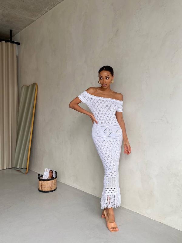 В наличии Вязаное платье "Мерия" из 100% итальянского хлопка - Цвет молоко Размер S-M и M-L Длина 125 см