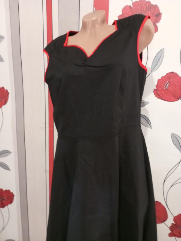Сукня, чорного кольору, Розмiр вказано 2XL. Наш 50-52. Склад котон 65%. Эластан -35%. Тягнется. Пог -53-58см. Пот-48-53см. Довжина -102см. Сзаду на блискавцi.