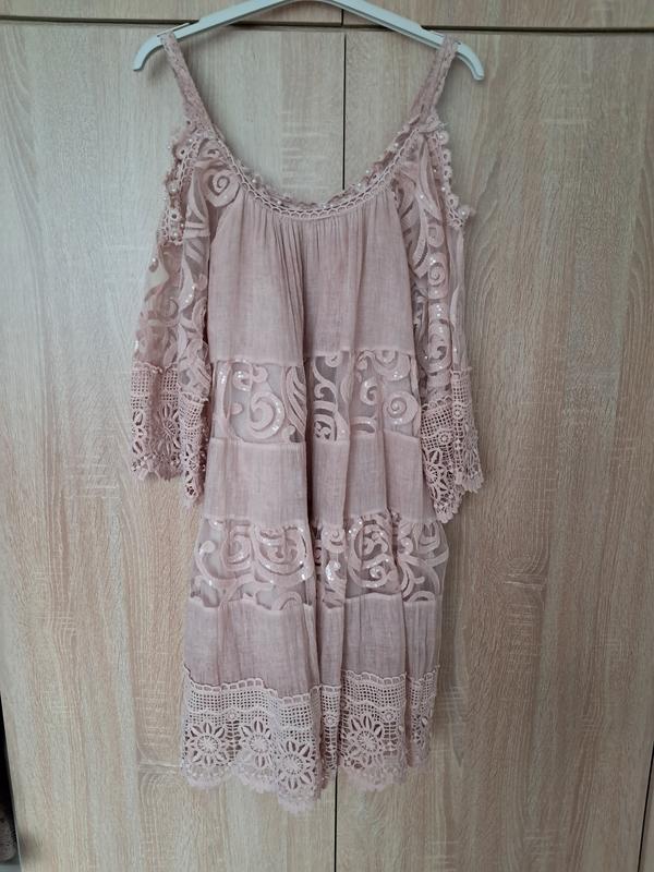 шикарное платье, но имеет дефекты видны на переднем фото под рукавом длин 82 в груди 52 рукав реглан 50 на брителях