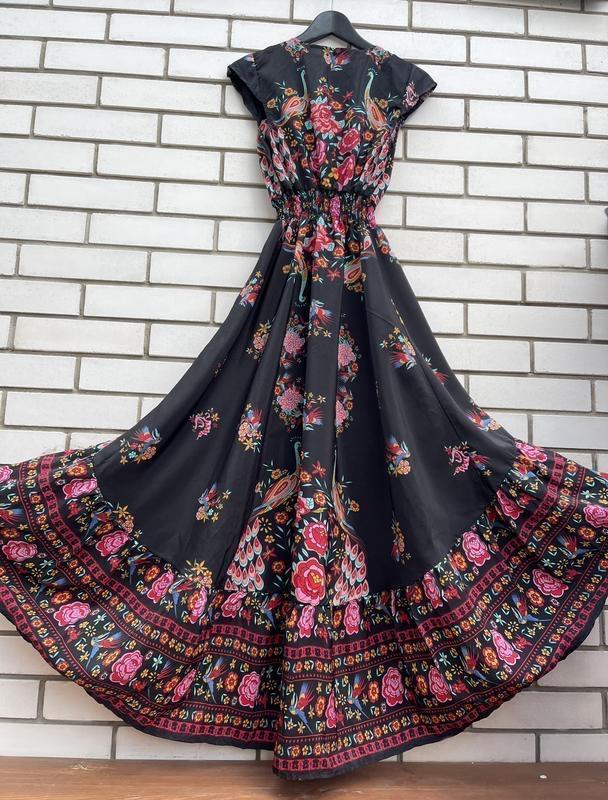 Материал легкий, не натуральный! Размер S Приблизительные замеры: Плечи 34 Полуобхват груди 40-+ Глубина выреза 25 Полуобхват талии (резинка)21, тянется на 37-+ Полуобхват бедер 67-+ Длина по спинке 139, спереди 105