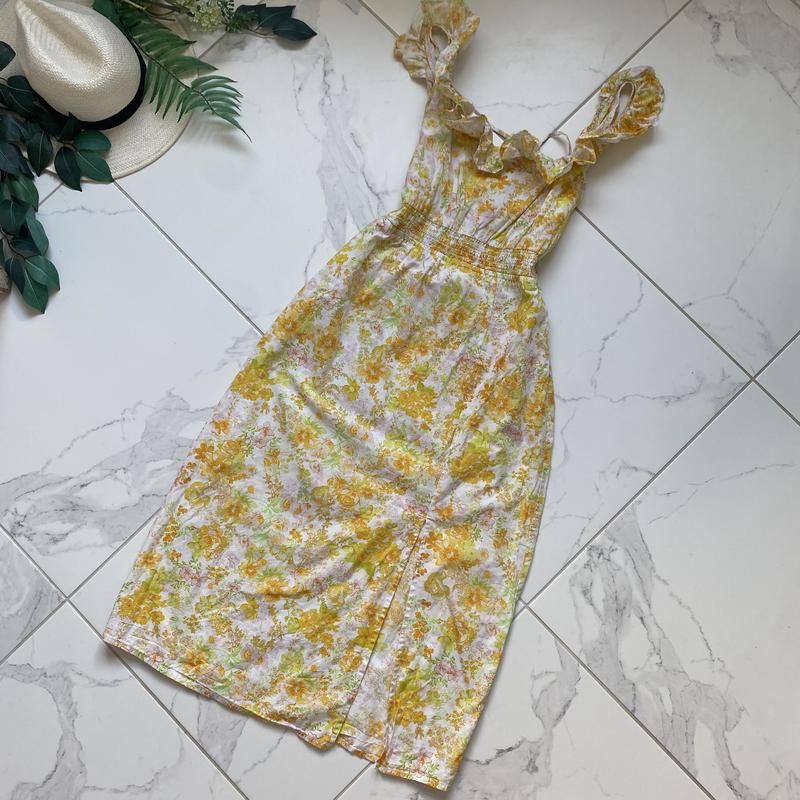 💡Платье желтое в цветы состояние идеальное, хлопок, разрез на ножку, сзади на спинке шнуровка р 10 м -длина 109 -нОг 45-48 -нОт 35-45 рез. -нОб 51 ФОТО НА ТИЛИ НЕМАЕТ