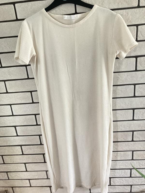 Платье в рубчик белое. Размер м-л