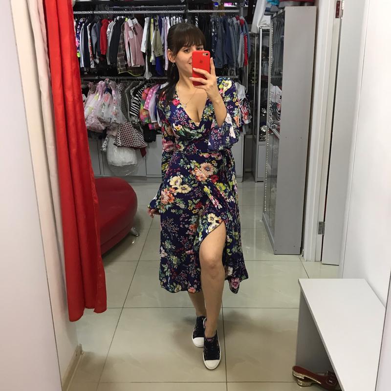 Нежное романтичное платье цветочного принта в длине миди на длинный рукав Ткань хб волокно! Очень приятная на ощупь. Легкая и невесомая! Крой платья на запах, что подчеркнет Ваше красивое декольте!По краю широкий волан, также есть на рукавах! Очень романтичная 💞
