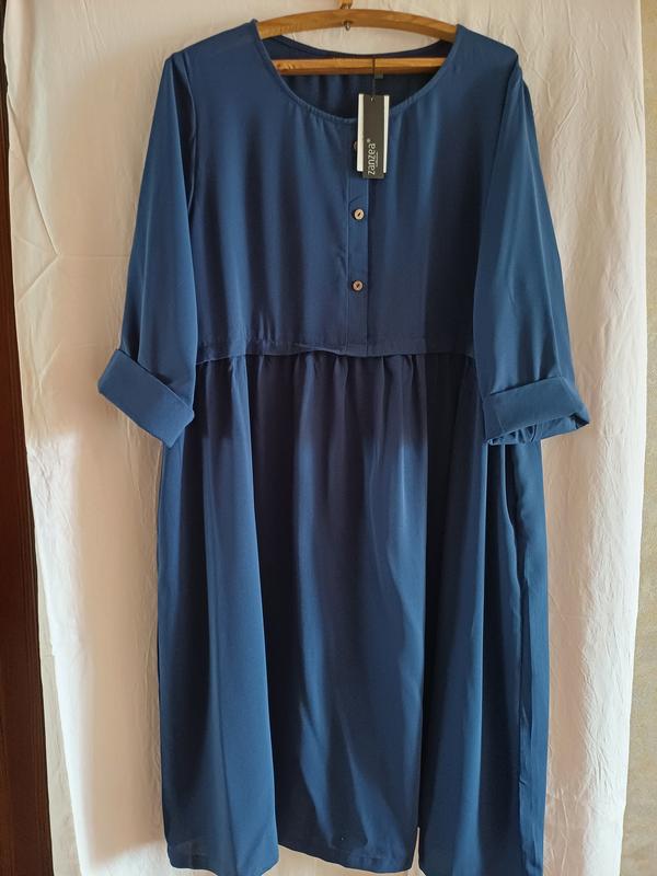 Новое летнее платье с бирками.Невероятно женственно женственное летнее платье из легкого крепа ( ткань почти тянется). Рукав 3/4 вырез горловины круглый. Карманов нет. Ткань: американский креп принт. Цвет: темно синий. Оплата продавцу на карточку.