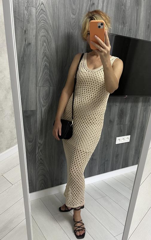 Стильна бежева сукня вʼязана на літо, знизу є підкладка, матеріал мягенький та приємний до тіла) Нова з біркою, виробник Туреччина 🇹🇷 Розмір - S, на фото вдягнута на зріст 164 см Заміри виробу: Довжина по спинці- 127 см Обхват грудей від 80 до 100 см Сукня добре тягнеться, підійде на XS, S та М