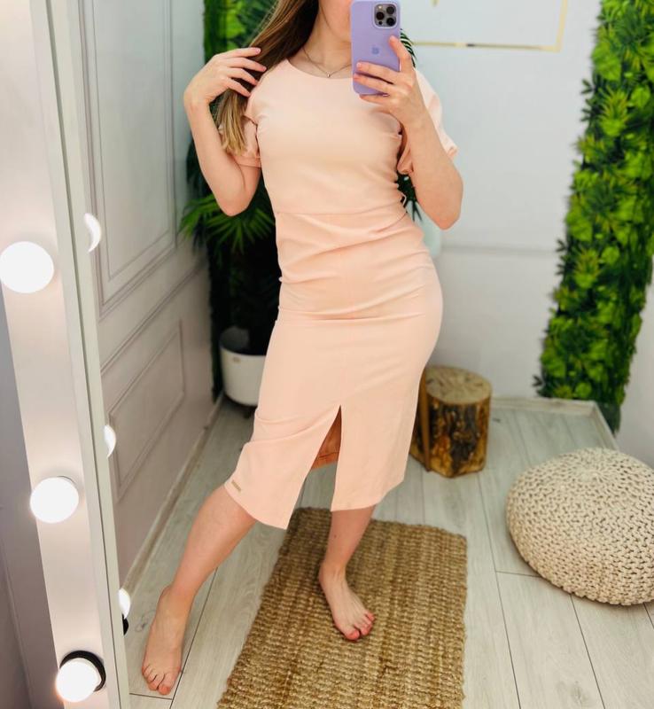 Продам нову сукню - олівець. Діловий стиль. Лягає по фігурі. Туреччина. Тканина не тягнеться. Колір - пудра, 46 розмір, сукня з біркою. Потребує прання. - Довжина - 116 см; - Груди - 90 см; - Стегна - 96 см