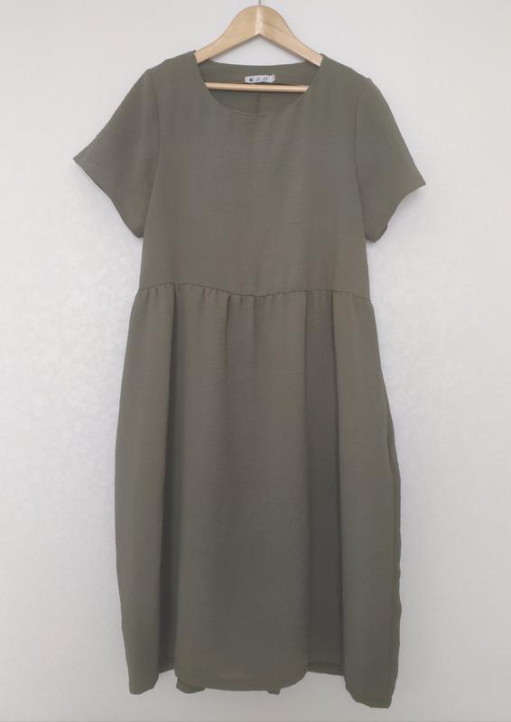 Платье миди свободный крой материал жатка, не нужно гладить размер 42-44 цвет хаки заміри надам