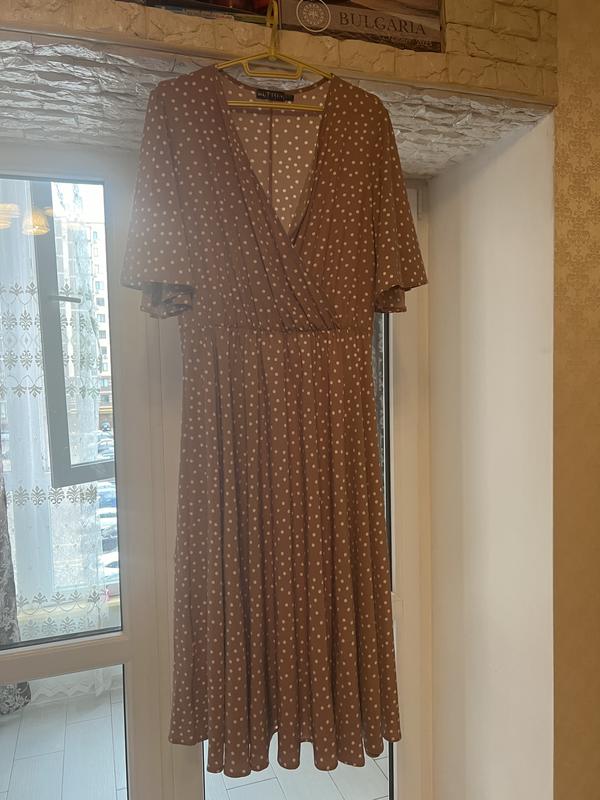Отличное платье в горох, широкий пояс красиво подчеркивает талию В талии резинка, поэтому размер подойдет от м к хл В новом состоянии, одета раз Длина 120см