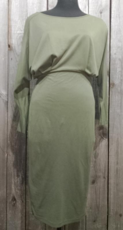 очаровательное платье цвета хаки. интересный крой. классно сидит на теле. состояние идеален. размер на С,М