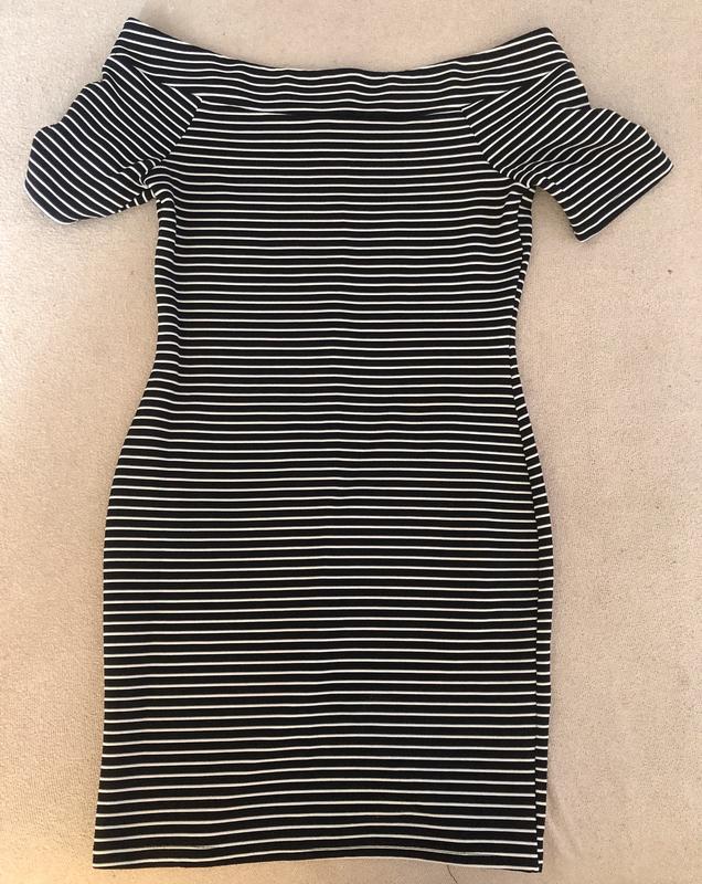 Красивое платье в полоску, очень красиво сидит на плечах в отличном состоянии размер на S,M