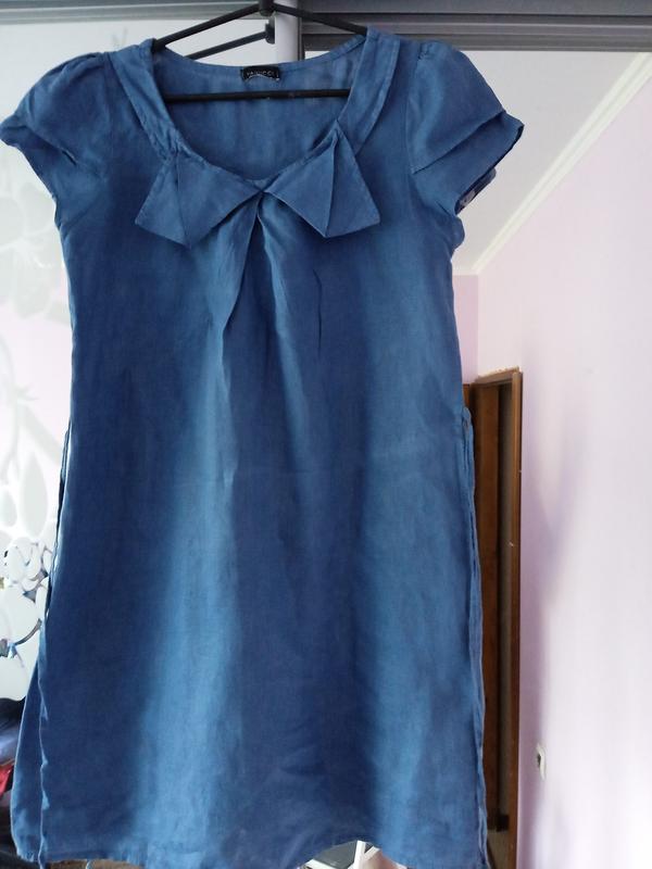 Женское стильное платье VANUCCI,производства Италия. 100% льон. Размер М, платье имеет поясок тому назад может подойти на размер S.Цвет серо-голубой (около фото28). Ткань тоненькая, идеальный вариант на лето. Замеры: длина изделия по спинке 90-91,шп 37, длина рукава 15, пог 53.
