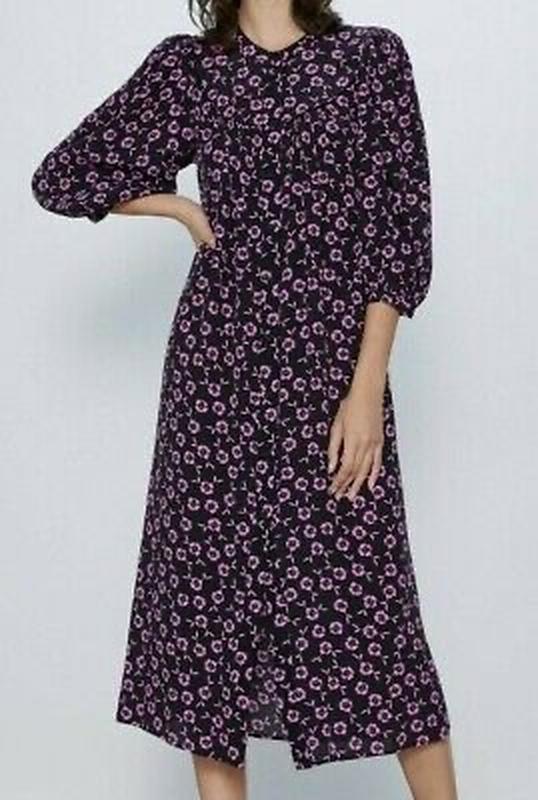 Натуральное платье платье Zara в цветочек. Размер S, но пойдет и на М. Очень легкое, отличное на лето. Натуральное, ткань - вискоза. На пуговицах, состояние идеальное. 👗 Смотрите другие объявления, там множество брендовых платьев. Zara Mango H&M Bershka Reserved Stradivarius Vovk Pink Armani Papaya New look