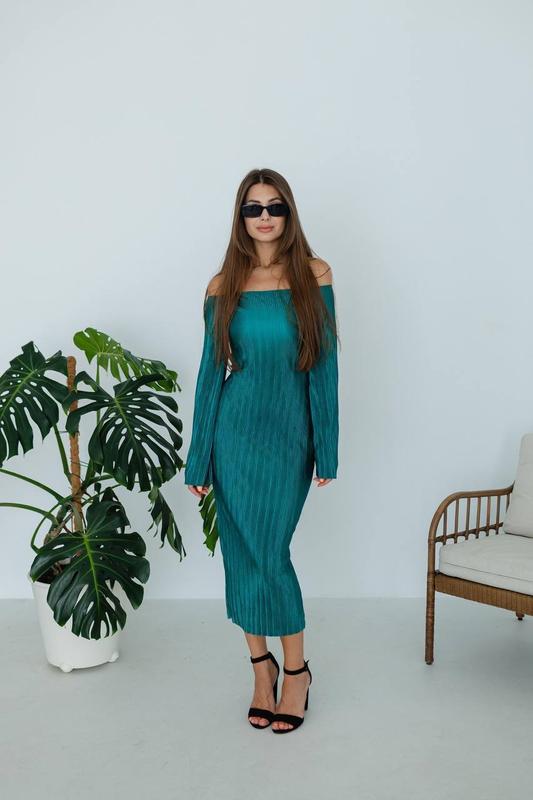 Мод 9131n Розміри: 42-44, 46-48 Тканина: пліссе + підкладка Колір: блакитний, смарагд Сукня з надзвичайно легкої тканини з підкладкою