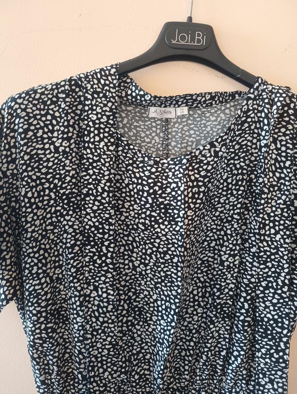 Женское платье из натуральной ткани. На талии резинка, спереди по ноге разрез.