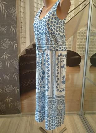 платье от известного британского бренда NEXT, прямого кроя, стягивается поясом на кулиске, V подобный вырез, длина мидакси, боковые разрезы, летний бело голубой принт, составная часть 100% хлопок (футболическая ), размер S, замеры на фото