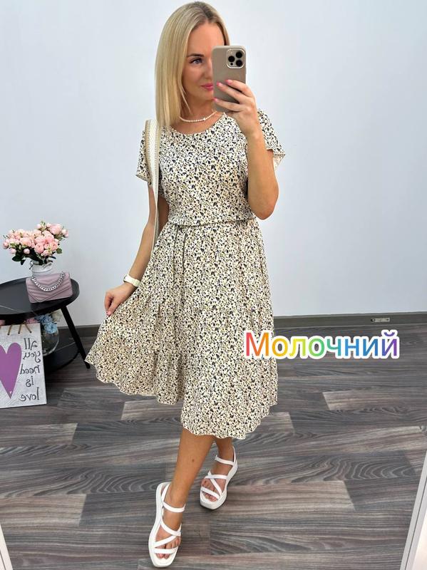 ✔️ Сукня Модель 193 ✔️Размеры:, 46-48 Тканина: штапель Цвета: молочный талия на резинке