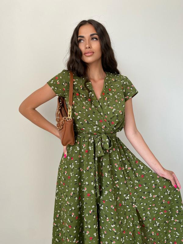 Красивое летнее платье на запах. Сшита из мягкого софта. Платье выполнено в А-силуэте. Имеет среднюю длину , что позволяет носить ее как на повседневной жизни, так и на праздничные случаи. Тканевой пояс помогает собрать платье и завершает образ. Платья на запах отличаются конструкцией, которая образует V-образный вырез. Этот дизайн добавляет изысканность и женственность, подчеркивая фигуру и создавая привлекательный силуэт. Благодаря запаху, платье облегает фигуру, при этом оставляя место для движения и обеспечивая комфорт при ношении. ПРАВИЛЬНЫЙ УХОД ________________________________ Стирка Подойдет как ручная, так и машинная стирка. Температура - не выше 30С. Выбирайте стиральный порошок в соответствии с типом ткани. Используйте деликатные мягкие средства для стирки. Отжим в стиральной машине - на небольших оборотах. Если стираете вручную - не стоит сильно отжимать изделие ___________________________________________________________ СУШКА Нужно сушить естественным способом, в горизонтальном положении, не используя прищепок. Хороший вариант для сушки таких вещей - вешалка. Особенно это касается изделий из шелка,софта.штапеля . иногда при сушке без вешалки на ткани могут оставаться разводы. Помните: яркие солнечные лучи вызывают выгорание ткани. ___________________________________________________________ Глажка Нужно гладить с особой осторожностью или вообще не гладить, потому что такие виды тканей, как правило, сохраняют свою форму. Температура глажки - 120 С, в режиме "Шелк". При этом не стоит пользоваться отпаривателем. При необходимости, глажку можно выполнить с изнаночной стороны изделия, используя легкую ткань.560