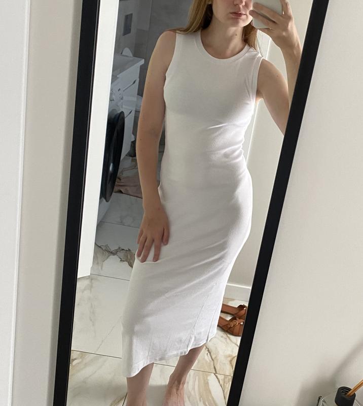 Новое платье с биркой Цвет белый (на модели серая для примера, потому что белая уже разглажена на сайте) В рубчик Размер S