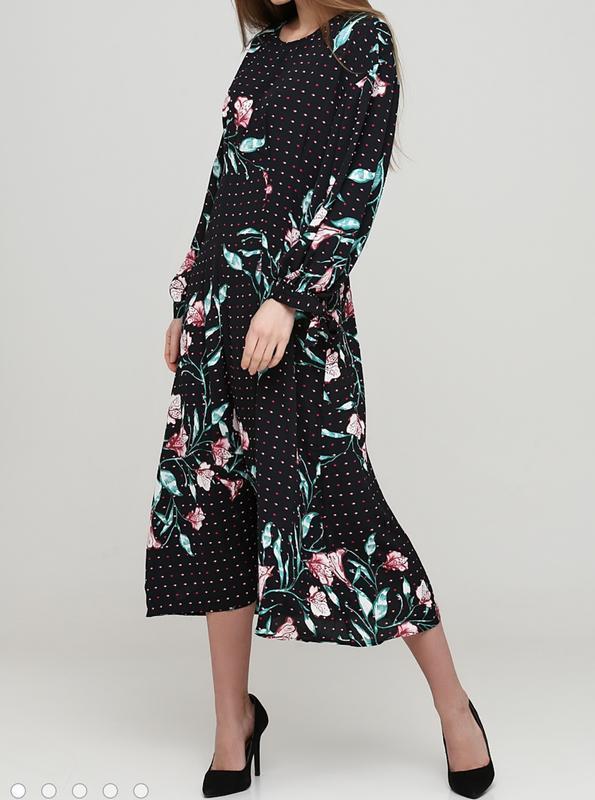 Стильное платье-миди H&M в цветочный принт. Розмір на бірці 42. Новая, внутренняя бирка повреждена. Широкие рукава с завязками. На спинке застегивается на молнию. ПОГ 49 см ПОТ 44 см ПОС 58 см Довжина 119 см. Состав: Полиэстер Смотрите, пожалуйста, все мое объявления — большой выбор платьев и блуз H&M, Zara, Mango, Asos, Reserved)!