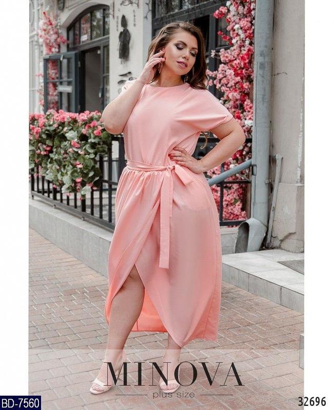 Сукня BD-7560 модель: 8609/1 Размеры: 50, 52, 54, 56 Сукня з поясом Тканина: супер-софт Колір: пудра Довжина: 140-143см