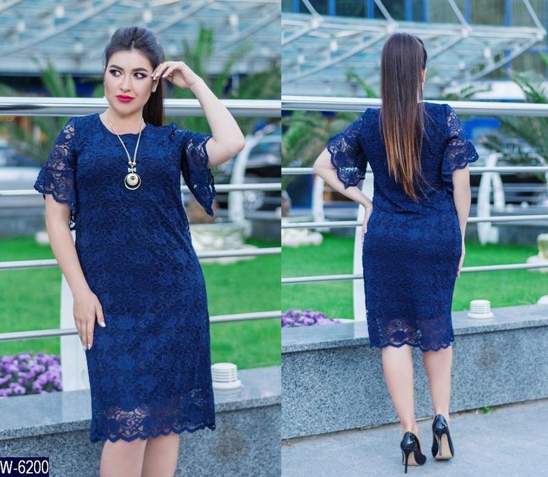 Платье W-6200 Размеры: 50, 52, 54, 56, 58, 60 мод 511 ткань:кружево+масло+кулон