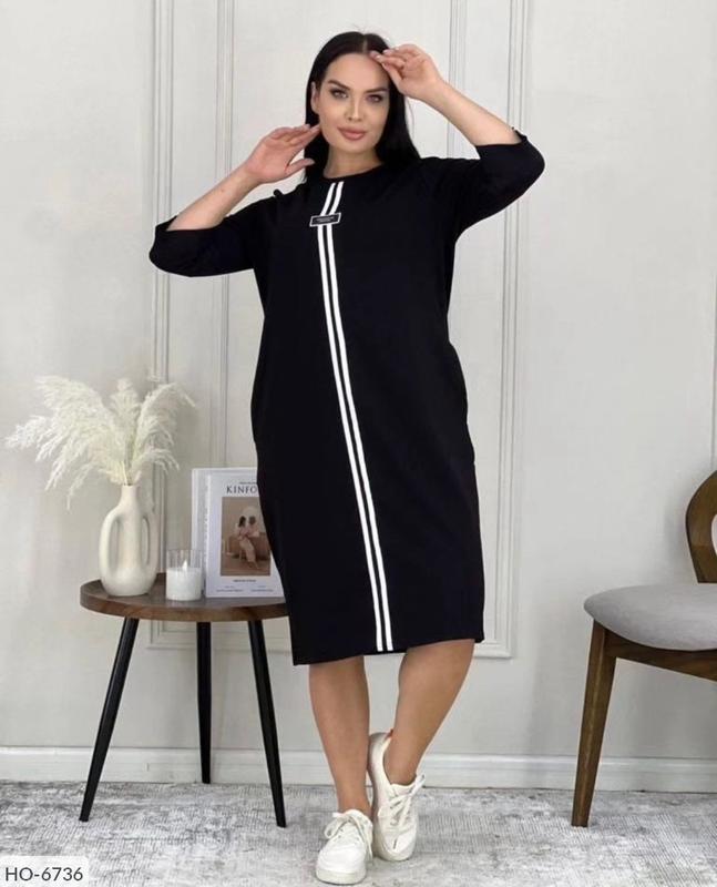 Сукня HO-6736 Мод80643 Размеры: 46, 48 Тканина: турецька двунитка на х/б основі кольори: шоколад, синій, марсал, бузок, капучино, хакі, малина, зелений