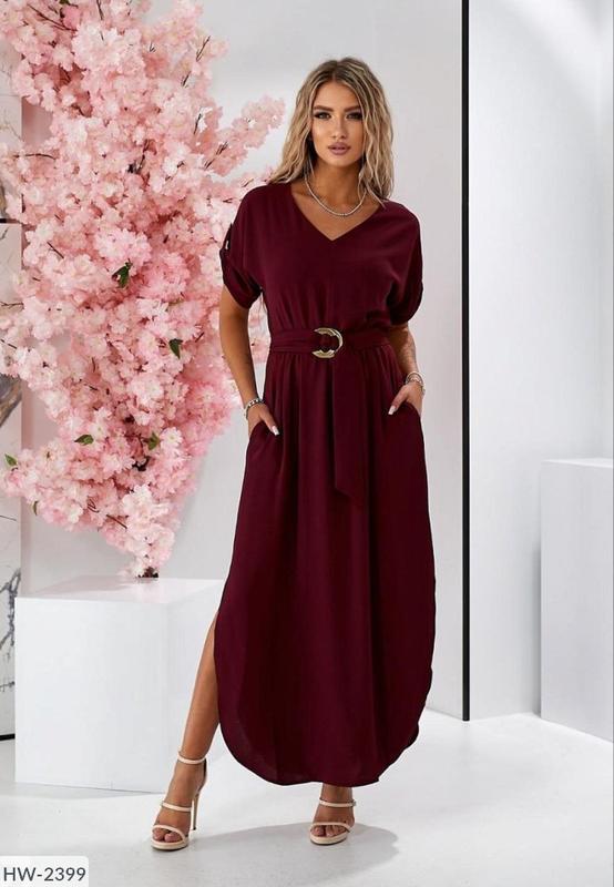 Сукня HW-2399 Код: 1523 Размеры: 44, 46 Сукня з асиметричною спідницею Тканина: креп віскозний Кольори: марсала Замір: Розмір: 36 (44) Довжина по виробу: 136см Обхват грудей: 92см Обхват талії: 84см Обхват стегон: 120см Розмір: 38 (46) Довжина виробу: 136см Обхват грудей: 96см Обхват талії: 90см Обхват стегон: 124см