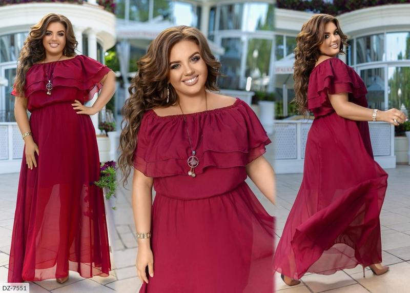 Сукня DZ-7551 1215 Размеры: 50-52 Колір: синій, бордо. Довжина 150 см., рукав 26 см. Тканина шифон на трикотажному підкладі про-во Туреччини. Довга сукня максі створена для високих дівчат. Романтичний і ніжний стиль сукні надають волани. Плаття Драпіровані воланами виглядають жіночно і кокетливо. Талія підкреслена.