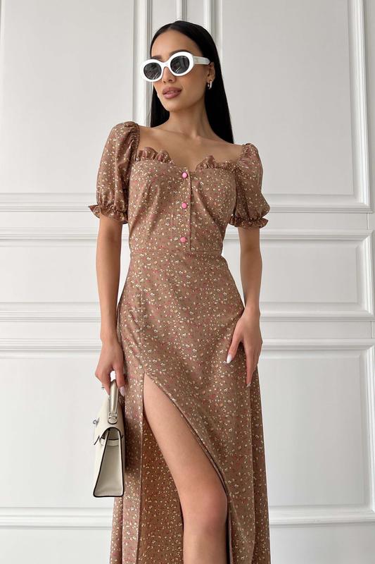 🚚Доставка: 📦Новая почта (наложка с предоплатой (размир перепалаты зависит от отода стражсти) или полная оплата), Укр почта (полная оплата). ‼️Не нажимайте кнопку "купить", сначала нужно уточнить с продавцом наличие размера, и договариваться о способе доставки и оплаты (нажимаете "поставить вопрос")!️ Летнее платье-миди романтичного кроя. Выполнено из струящейся принтованной ткани в мелкий цветочный принт. Модель украшает фигурный вырез и оборка по лифу, подчеркивающую зону декольте. Короткий рукав-фонарик с эластичной манжетой. Длинная юбка а-силуэта подчеркивает линию талии. Сбоку предусмотрен небольшой разрез. * Силуэт: полуприлегающий ● Рукав: фонарик ● Застежка: потайная молния по спинке и пуговицы по лифу ● Воротник (горловина): фигурная горловина ● Карманы: в швах на юбке ● Декоративные элементы: оборка по лифу 📌Тканина: принтований софт, Состав: 60% полиэстер, 38% вискоза, 2% эластан; 📌Цвет: черный, черника, кофе (принты как на фото) 📌Размер: S, M, L, XL Параметри моделi на фото: Зріст: 170 см, ОГ: 86 см, ОТ: 64 см, ОС: 93 см. На фото на модели представлена модель S. ЗАМIРИ: Объем по груди: S-88; M-92; L-96; XL-100; Объем по талии (платье): S-68; M-72; L-76; XL-80; Объем по бедрам: S-94; M-98; L-102; XL-106; Объем рукава сверху: S-44; M-44,5; L-47; XL-58.5; Длина изделия по спинке: S-115; M-115; L-115; XL-115; Длина изделия до талии: S-25; M-25; L-25; XL-25; Длина юбки: S-90; M-90; L-90; XL-90; Длина рукава: S-31; M-31; L-31; XL-31; Длина рукава по внутреннему шву: S-10; M-10; L-10; XL-10; Отправка на каждый день, кроме субботины и недели. При наличии нужного размера, отправка в день заказа при условии оплаты до 14.00. Обмин и возврат: если рич не подошла, следует повесить в течение 2-х днivов пищалки.