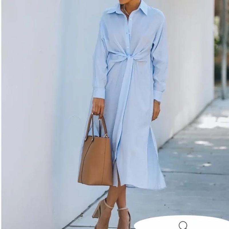 Легкое платье рубашка декорировано узлом спереди. Застежка на пуговицы, обычный рубашечный воротник, длинный рукав с манжетом, разрезы внизу, приятная вискозная ткань. РОЗМІР: L ЗАМЕРЫ: длина 123 плечи 58 пог 66 пот 54/64 поб 71 рукав от воротника 77 СОСТАВ: вискоза СТАН: идеальный ➖➖➖➖➖➖➖➖➖ Вещи в наличии👗🧥👠 Фото на себе не делаете. 🙅♀️ Отправка: НП, Укрпочта📦 Вся необходимая информация придам😊
