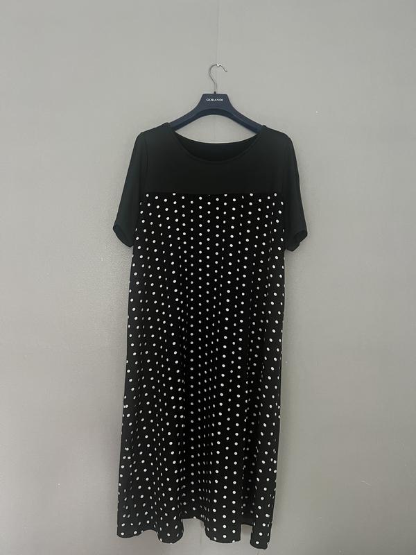 Платье черное в горошек, ткань сверху тоненький полистер Груди- 126см Талия-134см Бедра-140см Длина-115см