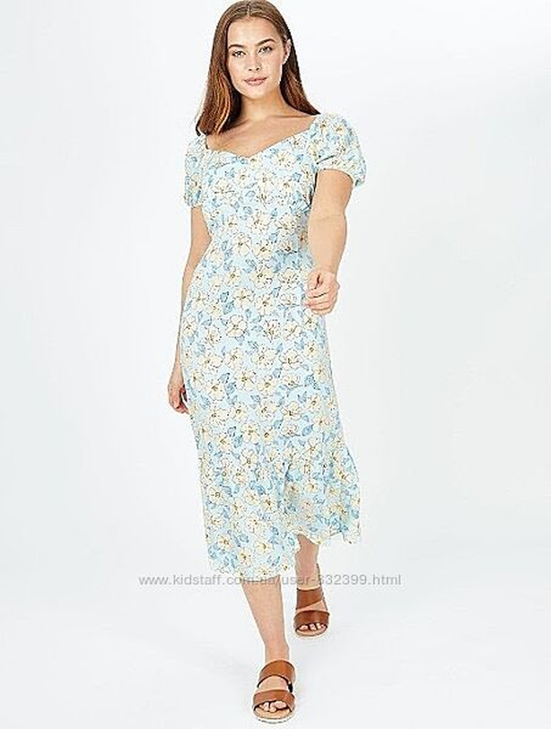 Нежное платье миди с красивым цветочным принтом от GEORGE размер M L длина 120см ПОГ 49 см собрано в груди, по шву резиночки ПОТ 43 см- 53 см ПОБ 53 см 100% вискоза, легкая комфортная, приемная тактильно ткань ниспадающая рукава буф очень женственная сукэночка ІДЕАЛЬНОГО СТАНУ