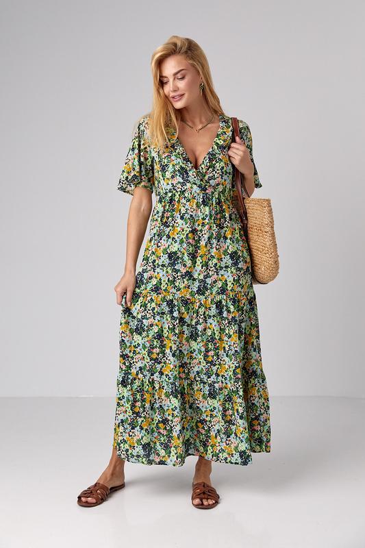 Длинное платье с оборкой и цветочным принтом - салатовый цвет, xs (есть размеры)
