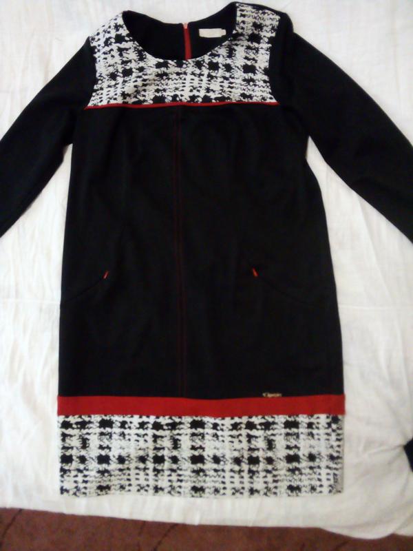 Деловое платье. Скрытые карманы. Обработка красной тесьмой и молнией. Отлично смотрится на фигуре.ЗАМИРЫ - ПОГ=54, ПОТ-56, ДЛ.ИЗД.-100, ДЛ.РУКАВА-58.