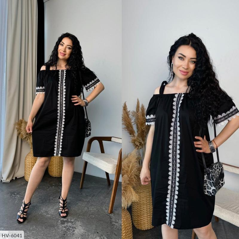 Сукня HV-6041 Модель 1336 Размеры: 48-50, 52-54, 56-58, 60-62 Тканина турецький коттон, дороге мереживо подвійне біло Чорне не світиться Колір пудра, Чорний, темно-синій, червоний Довжина 100 см Мереживо чорно-біле але може відрізнятися малюнок плаття оверсайс плюс 10см повинно до параметрів Заміри на 1336 Розмір грудей. Груди. Талія. Стегно. Довгий 48-50 124. 120. 125. 100 52-54. 132. 128. 132. 101 56-58. 140. 136. 140. 102 60-62. 148. 143. 147. 103 На моделі 48-50 розмір Її параметри 103 86 106 Зріст 170 см