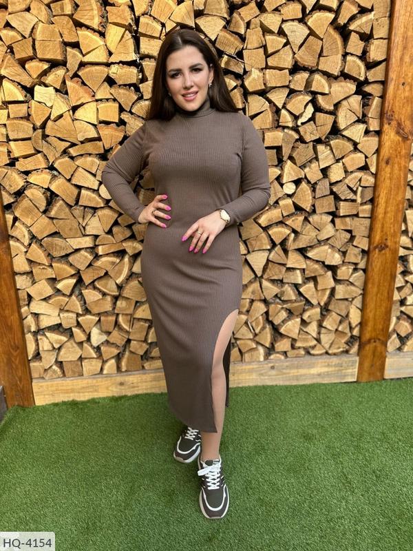 Сукня HQ-4154 модель 012vl Размеры: 42-44, 46-48 Тканина: турецький рубчик (м'яка, приємна тканина, не кошлатится) Склад: бавовна 85%, еластан 10%, поліестер 5% Кольори: графіт, чорний шоколад Приталене плаття з вирізом з одного боку, висока горловина, довгий рукав Параметри моделі-батал ОГ 108, ОТ 86, ОБ 110, зріст 165см, на ній представлений розмір 50-52 Заміри виробу: Розмір 42-44 Об'єм грудей 80 (90) Об'єм талії 70см Об'єм стегон 80 (90) Рукав від горловини 59 Довжина по спинці 120 Біцепс 30 Розмір 46-48 Об'єм грудей 90 (100) Обсяг талії 80 Об'єм стегон 90 (100) Рукав від горловини 60 Довжина по спинці 122 Біцепс 32