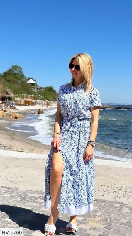 Сукня HV-6700 Размеры: 42, 44, 46 Стильне плаття на гудзиках, Тканина: щільний штапель Колір: білий в синій квітка Пояс в комплекті