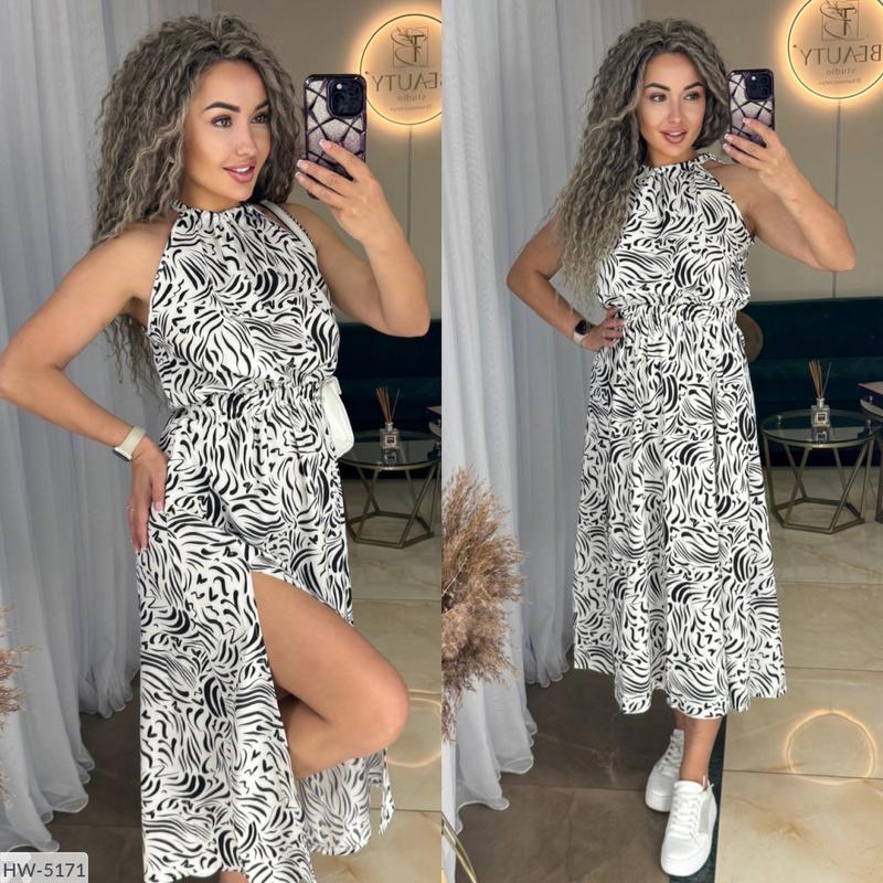 Сарафан HW-5171 арт. sv 464 Размеры: XXL Тканина: Євро-софт Колір: блакитний Опис: стильний сарафан міді довжини. Модель з резинкою на талії, приталеного крою з розкльошеною довгою спідницею, декорованою розрізами.