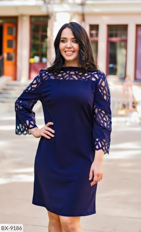 Сукня BX-9186 мод 808 Размеры: 58, 60 Тканина: креп-дайвінг + вишивка на сітці