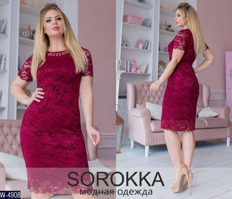Платье W-4908 Размеры: 50, 52, 54, 56, 58, 60, 62, 64 ткань: кружево+масло украшение пришито мод № 483