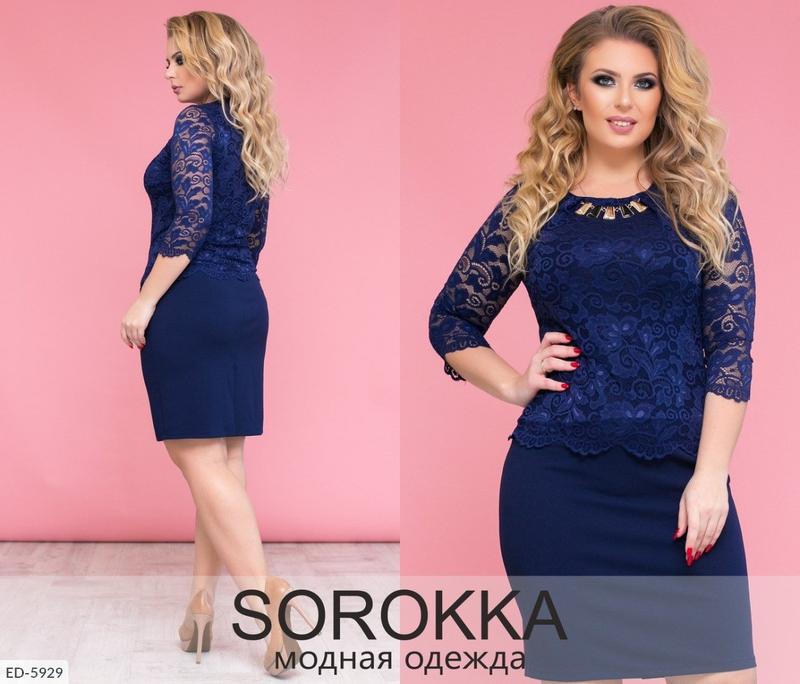 Сукня ED-5929 мод:3061 Размеры: 46, 48, 50, 52, 54, 56, 58, 60 Тканина: Мереживо + масло + креп-дайвінг + прикраса