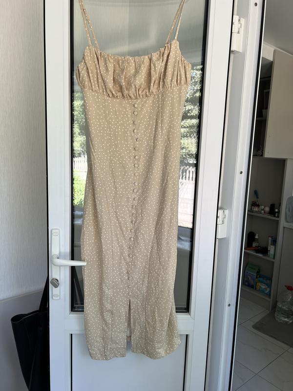 Красивый сарафан.нежный бежевый цвет в белый горох